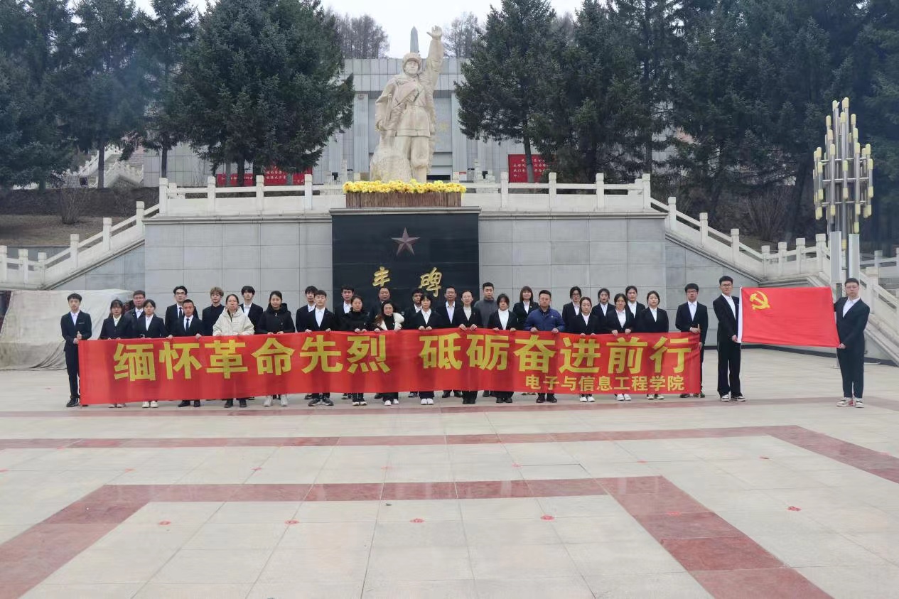 为深切怀念在新中国革命事业中前仆后继、英勇献身的革命烈士们,继承前辈革命意志,弘扬伟大建党精神,4月4日,电子与信息工程学院组织教师党员与学生骨干前往本溪烈士纪念馆开展“缅怀革命先烈,砥砺奋进前行”清明祭扫活动。学院党总支书记宋万刚、副书记卢志鹏,全体辅导员,部分学生党员、积极分子以及学生干部参加本次活动。活动由学院教学副院长胡楠主持。
