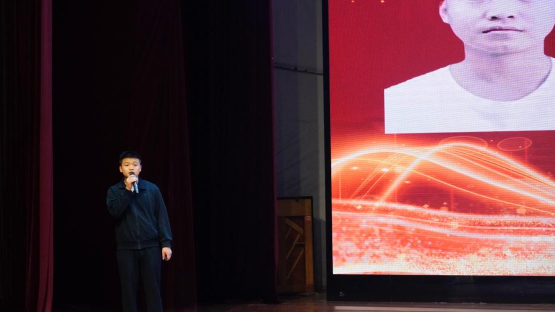 王俊同学以退伍军人的身份分享了入伍期间获得优秀士兵的事迹和报考公务员的经历,他用真实幽默又富有感染力的话语激励同学们要明确新时代青年人的责任与使命,坚定理想目标,自信自强、发奋学习,在新时代新征程上,用青春的汗水践行报国之志、书写精彩人生。
