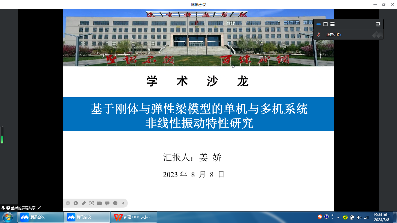 学术沙龙交流由支珊、姜娇两位博士分别针对“智能工厂AI核心应用技术-机器视觉测量”和“基于刚体与弹性梁模型的单机与多机系统非线性振动特性研究”作主题汇报,两位博士结合自身的科研方向,就相关领域的学术前沿、理论热点、心得体会与参会教师进行了交流。