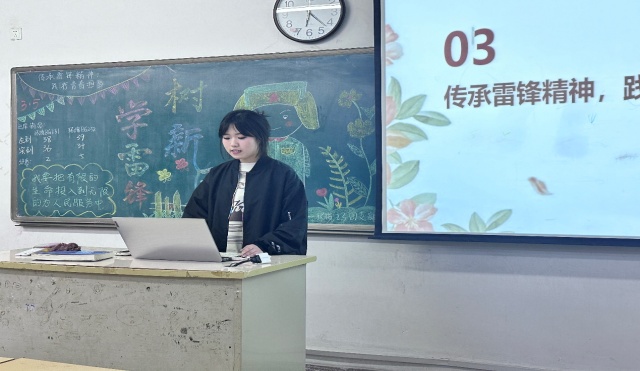 在此次团课中,环境工程专业23级团支书从“什么是雷锋精神”“雷锋精神有哪些”“时代需要雷锋精神”三个部分向同学们展开讲解,进一步让同学们了解当今大学生不仅担负着全面建设社会主义现代化国家的历史重任,还要将雷锋的奉献精神、钉子精神、集体主义精神传承下去。生物技术专业23级团支部以观看视频的形式让同学们了解了雷锋同志伟大而光辉的一生,并全面理解了无私奉献、乐于助人的雷锋精神的深刻内涵。
