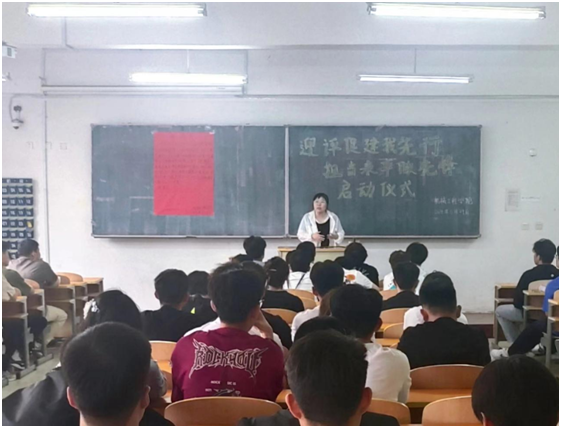为引导学生以迎评促建为己任,进一步树立学生讲文明、树新风的精神风貌,推进形成优良学风和院风,5月29日下午,机械工程学院在博雅楼三区211教室举办“迎评促建我先行,担当表率做先锋”主题活动启动仪式。启动仪式由辅导员谢飞主持,辅导员崔彩霞和学生干部代表参加了本次活动。