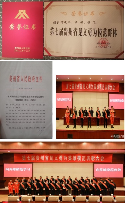 2023年2月,荣获贵州省人民政府“第七届贵州省见义勇为模范群体”荣誉称号
