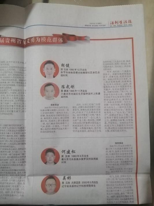 吴彬等见义勇为事迹刊登在《贵州日报》《贵州法治生活报》