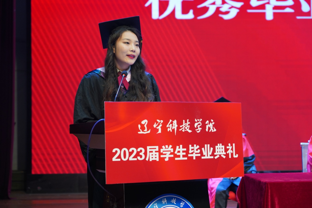 考取中南民族大学硕士研究生、荣获辽宁省优秀毕业生荣誉称号的人文艺术学院常涛缨同学代表全体2023届毕业生发言,表达对母校的不舍和感激之情。