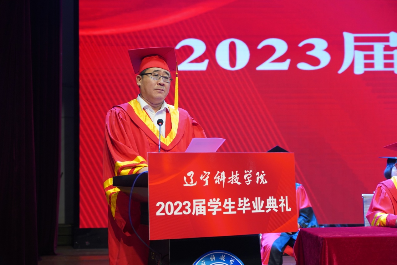 毕业典礼上,副校长罗旭东宣读《辽宁科技学院关于表彰2023届优秀毕业生的决定》,党委副书记赵毅宣读《关于聘任辽宁科技学院2023届毕业生校友联络员的决定》,学校学位评定委员会主席李卫民宣读《辽宁科技学院关于准予2023届应届本科学生毕业的决定》《辽宁科技学院关于授予2023届应届本科毕业生学士学位的决议》。全体校领导为辽宁省优秀毕业生、校优秀毕业生代表颁发荣誉证书,为毕业生代表颁发毕业证书。