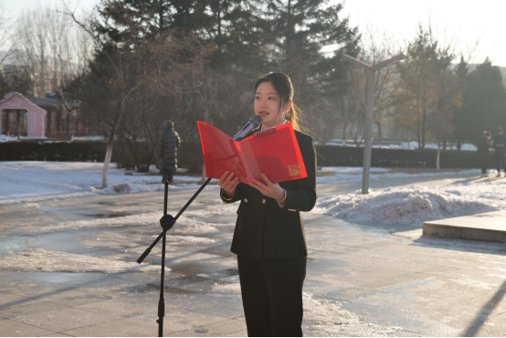 人文艺术学院、校团委学生会主席团成员姜冰同学作为学生代表,围绕“钢筋铁骨启新程,青春奋进新时代”为主题进行国旗下演讲。姜冰表示,钢筋铁骨,是时代的呼唤,也是青春的底色,明道明德,铸就钢筋铁骨之魂;求新求实,锻造钢筋铁骨之力。同学们应以校训为指引,在学习和生活中,像钢铁经千锤百炼般,在磨砺中成长,在挑战中强大;面对困难毫不退缩,用扎实知识和顽强意志迎接挑战,为学校发展和国家建设贡献青春力量。她呼吁同学们要深入学习和领悟习近平总书记在辽宁考察时的重要讲话和重要指示精神,以求新求实为动力,敢于创新,勇于实践,勇敢逐梦,用智慧和汗水,书写青春篇章。