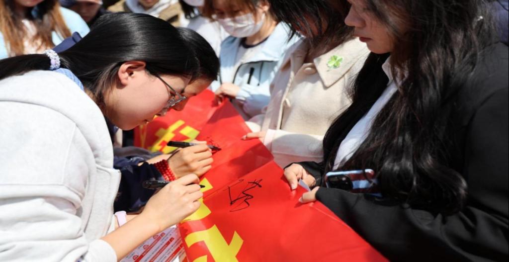 4月15日,学生工作处与校团委联合开展“4·15”全民国家安全教育日主题签名活动。校学生会志愿者通过现场解读、发放宣传资料、互动答疑等方式,为广大学生普及政治安全、网络安全、校园安全等多领域安全知识。过往师生驻足了解、积极响应,在宣传横幅上郑重签下姓名,以签名践承诺、以行动表决心,营造出人人关注国家安全、人人守护国家安全的浓厚校园氛围。