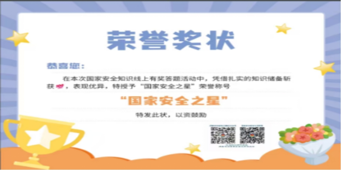 组织广大师生参加第三届“国家安全 共同守护”主题线上有奖答题活动,全校师生积极响应、热情参与。依托辅导员工作室开展“国安砺剑 学以知行”国家安全教育知识竞赛,通过以赛促学的方式,科普国家安全教育内容,激发了师生学习国家安全知识的积极性,加深了对相关知识的记忆和理解。